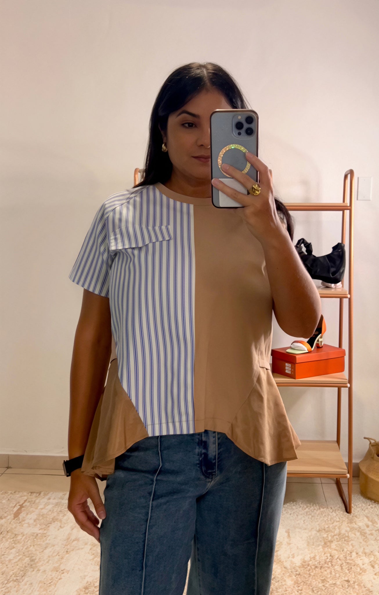 Its loose silhouette with peplum-type finish provides movement and favors the figure, making it ideal for casual looks with an elegant touch.